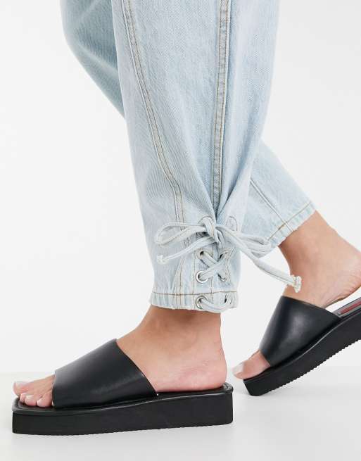 Sandalias negras con miniplataforma plana y puntera cuadrada estilo años 90 de London Rebel