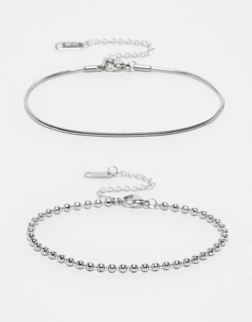 Pack de 2 pulseras de cadena de serpiente y cadena de esferas de acero inoxidable de Lost Souls