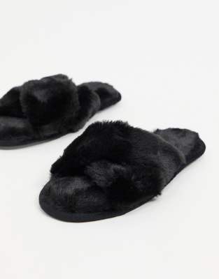 Pantuflas negras con parte delantera cruzada de tejido mullido de Loungeable