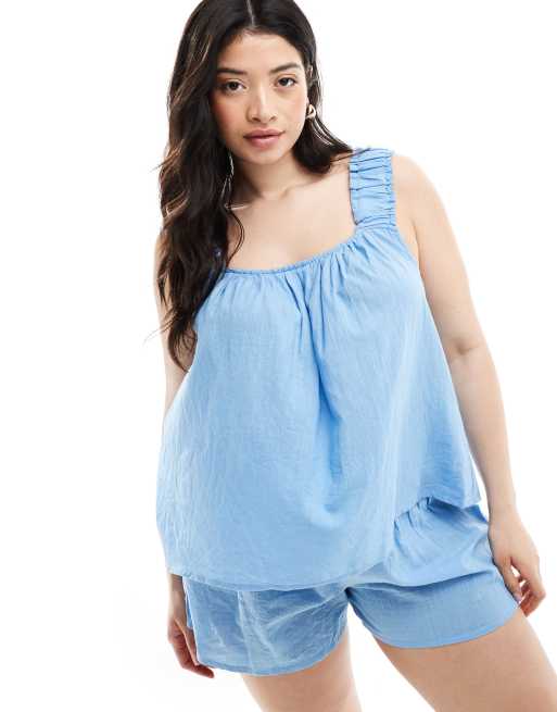 Pijama azul de top amplio de tirantes y pantalones cortos de algodón de Loungeable Curve