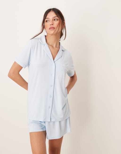 Pijama azul pastel de pantalones cortos y camisa de manga corta de punto liso de Loungeable