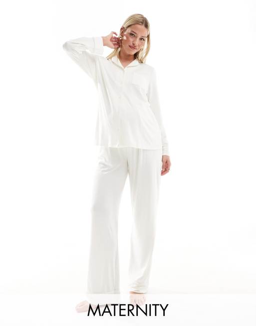 Pijama largo color crema de tejido suave de Loungeable Maternity