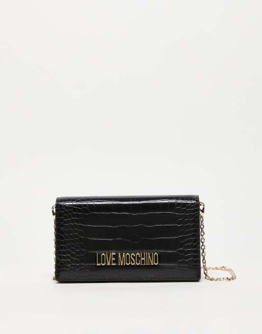 Bandolera negra de efecto cocodrilo de Love Moschino