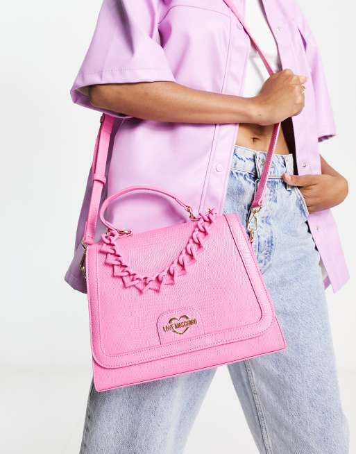 Bandolera rosa con asa superior y detalle de cadena de Love Moschino