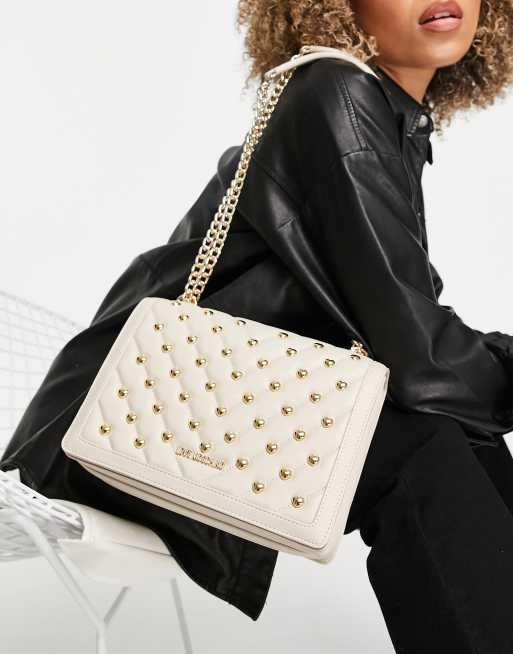 Bolso de hombro color crema con tachuelas y cadena de Love Moschino