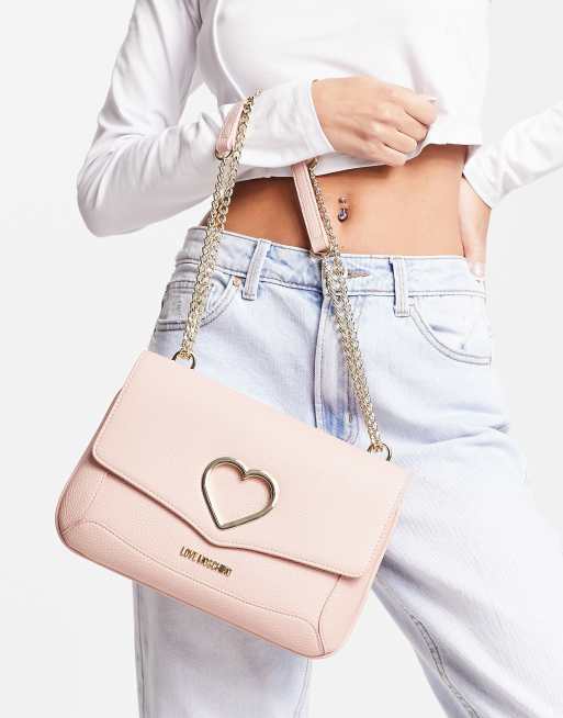 Bolso de hombro rosa con solapa superior y detalle de corazón de Love Moschino