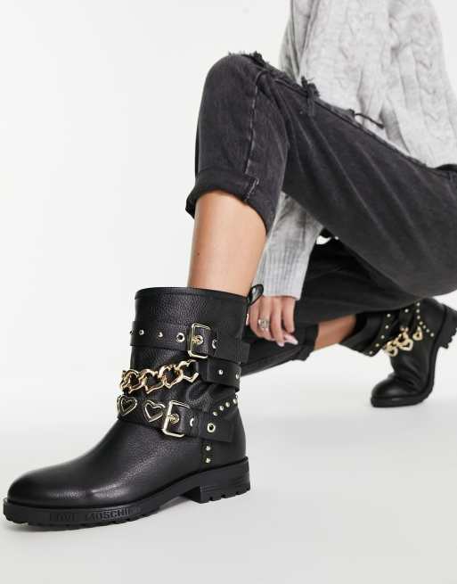 Botas biker negras de media caña con detalle metálico de Love Moschino