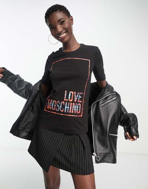 Camiseta negra con recuadro del logo metalizado de Love Moschino
