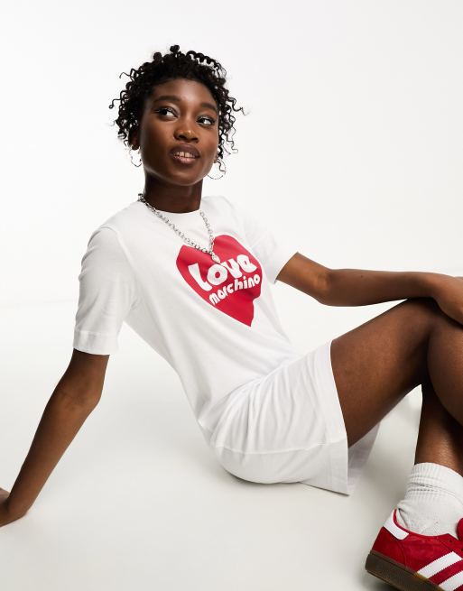Vestido blanco de punto con logo de corazón de Love Moschino