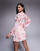 Vestido corto rosa de manga larga con estampado floral y detalle de volantes de Love Triangle