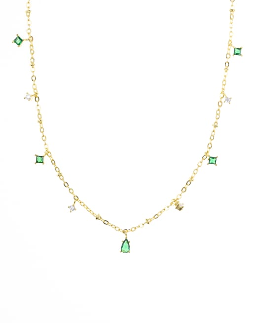 Collar dorado chapado en oro con colgantes delicados fijos de circonitas verde esmeralda de Lovisa