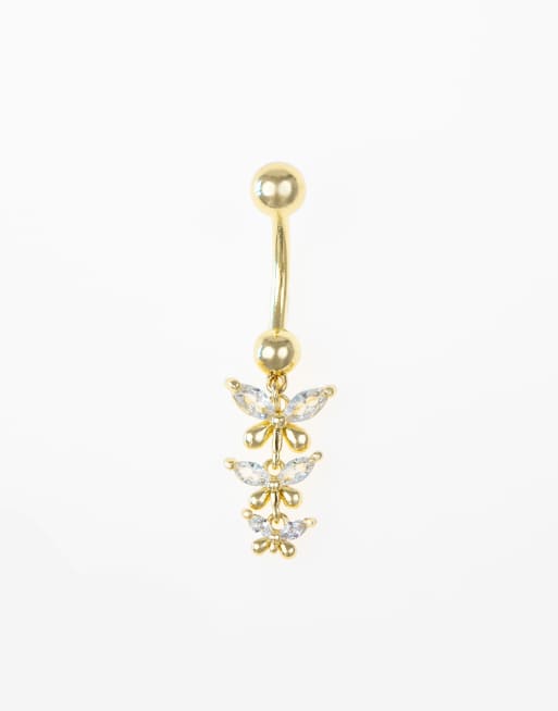 Piercing para el ombligo dorado con colgante triangular de acero quirúrgico chapado en oro de Lovisa