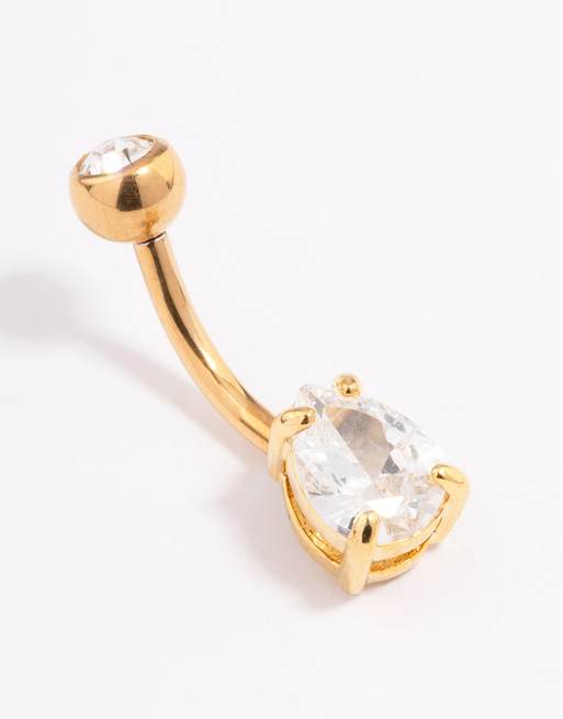 Piercing para el ombligo dorado de acero quirúrgico chapado en oro con diseño biselado y circonita de Lovisa