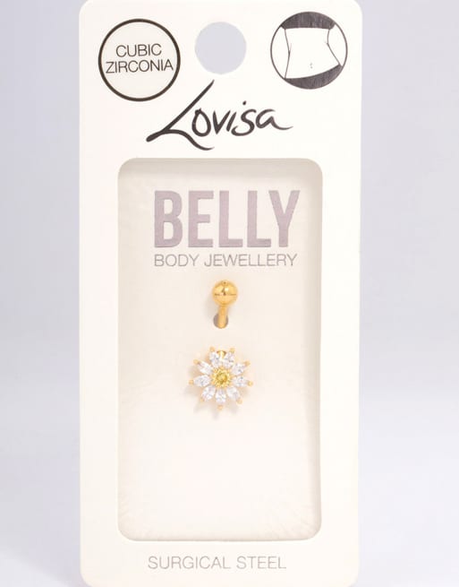 Piercing para el ombligo dorado de acero quirúrgico chapado en oro con pequeño ramillete de circonitas de Lovisa