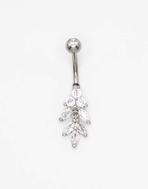 Piercing para el ombligo plateado de titanio con cristal de talla marquesa de Lovisa