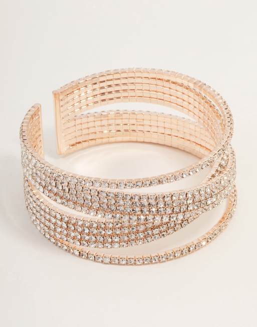 Pulsera rígida dorado rosado ancha de varias hileras con cristales de Lovisa
