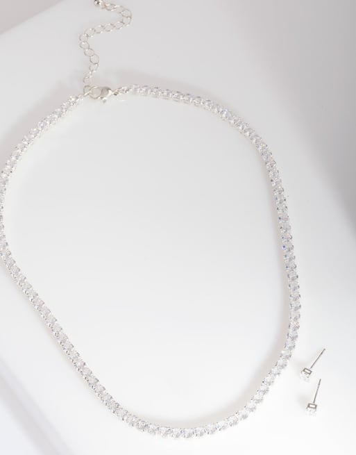 Set de collar de tenis y pendientes plateados con circonitas de Lovisa