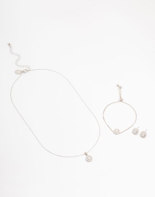 Set plateado de pendientes, pulsera y collar con circonitas redondas de Lovisa