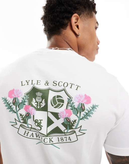 Camiseta blanca con estampado en la espalda Thistle Club de Lyle & Scott