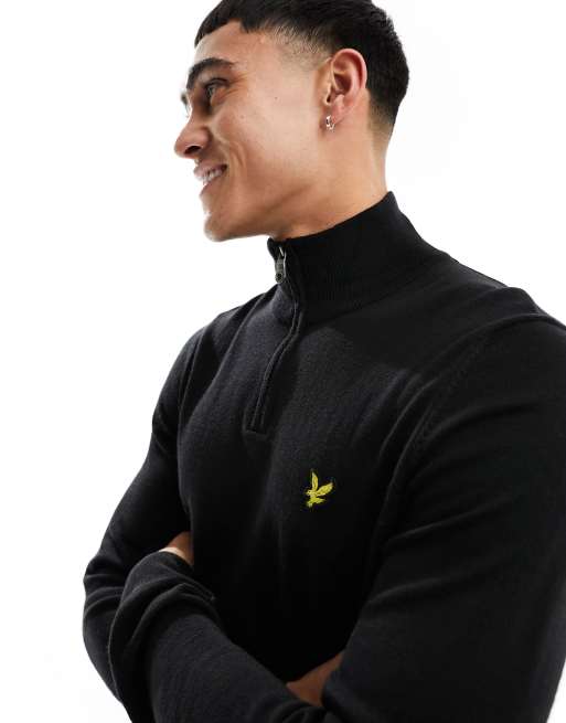 Jersey negro con cremallera corta y logo de punto de mezcla de lana de merino de Lyle & Scott