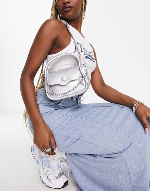 Boldo de mano pequeño plateado con asa de cadena de Madein.