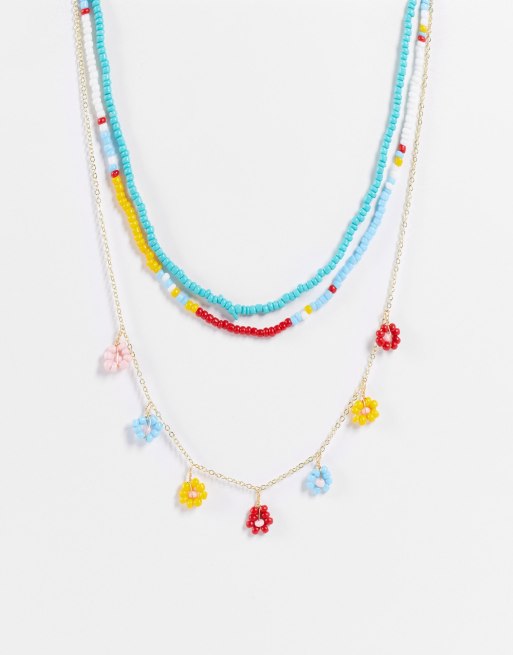 Collar multicadena de cuentas con charms de flores de Madein.