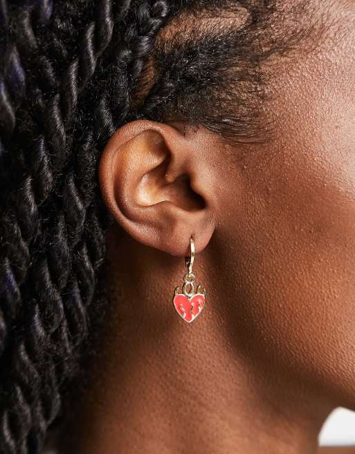 Pendientes dorados y rojos con diseño de corazón en llamas de Madein.