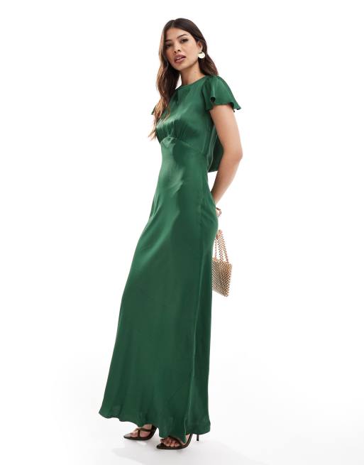 Vestido de dama de honor largo verde esmeralda de manga corta con espalda desbocada de Maids to Measure