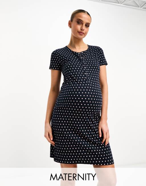 Camisón azul marino de lactancia con estampado de lunares rosas de Mamalicious Maternity