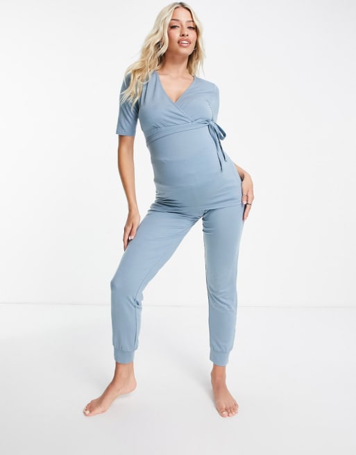 Conjunto azul de top cruzado y joggers de Mamalicious Maternity