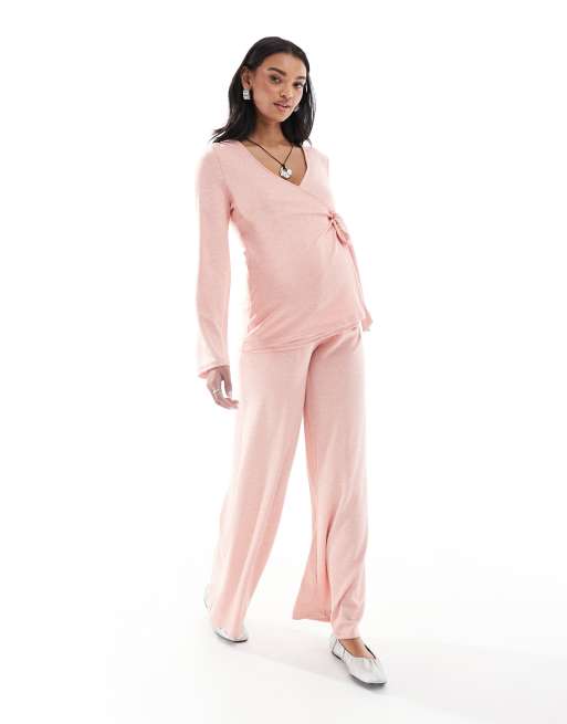 Conjunto rosa de pantalones y top de punto flameado de Mamalicious Maternity