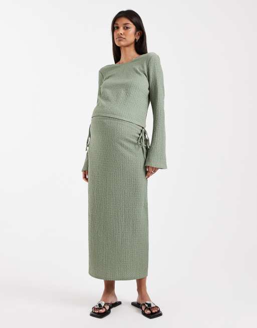 Falda midi verde caqui con lazada en la cintura de punto texturizado de Mamalicious Maternity (parte de un conjunto)