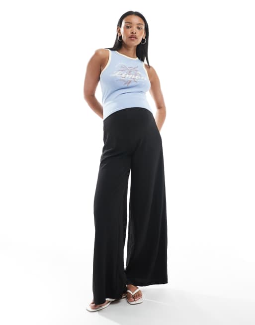Pantalones negros de pernera ancha con detalle de lazada en la cintura de punto liso de Mamalicious