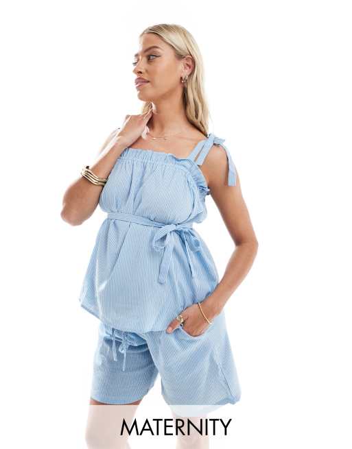 Top azul a rayas de tirantes anudados de Mamalicious Maternity (parte de un conjunto)