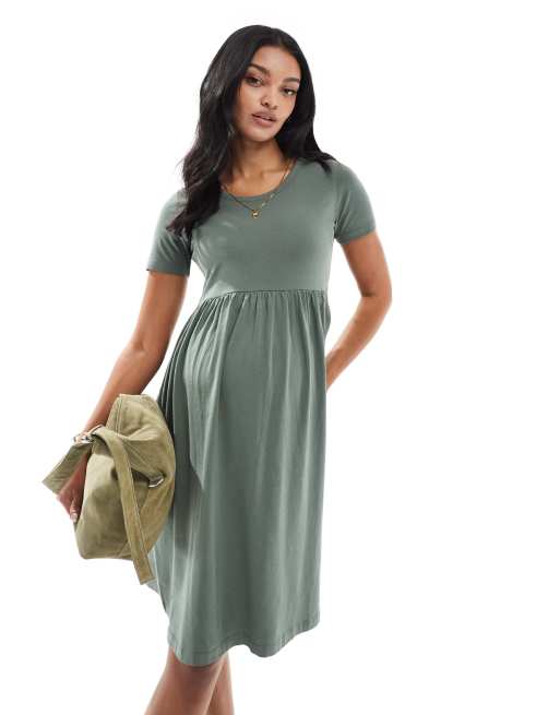 Vestido corto caqui de estilo camiseta y corte amplio de Mamalicious Maternity