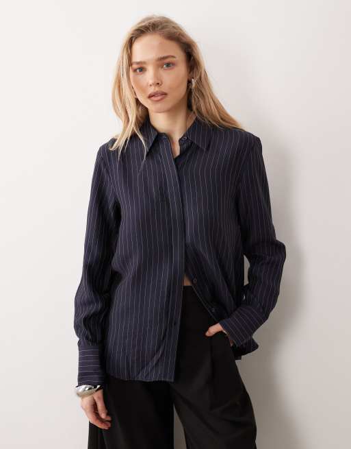 Camisa azul marino con raya diplomática Beli de Mango (parte de un conjunto)