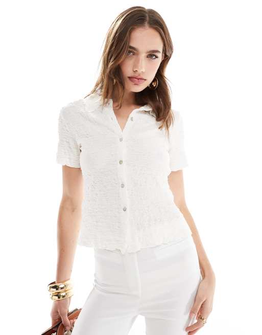 Camisa blanca de manga corta de tejido texturizado de Mango