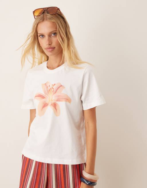 Camiseta blanca con estampado gráfico de lirio de Mango