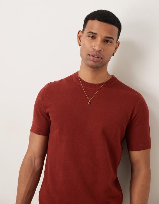 Camiseta color óxido de punto fino de mezcla de algodón de Mango