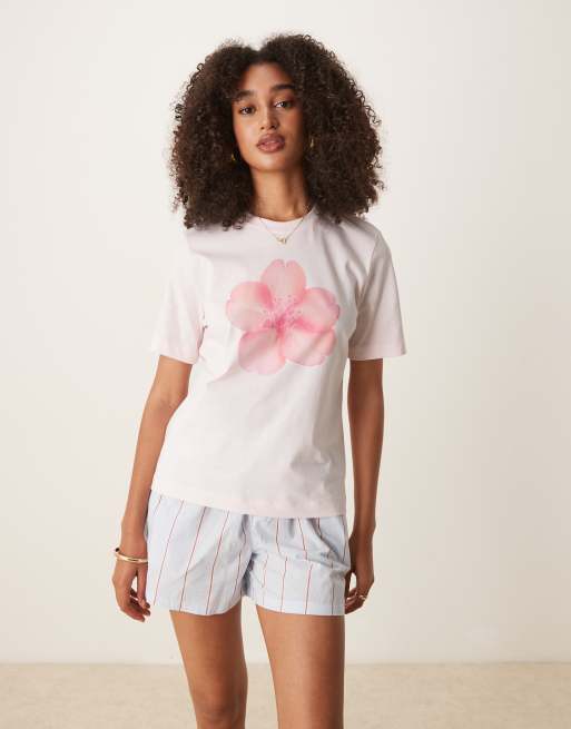 Camiseta rosa pastel con estampado gráfico floral de Mango
