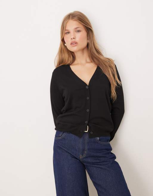 Cárdigan negro con cuello de pico de Mango