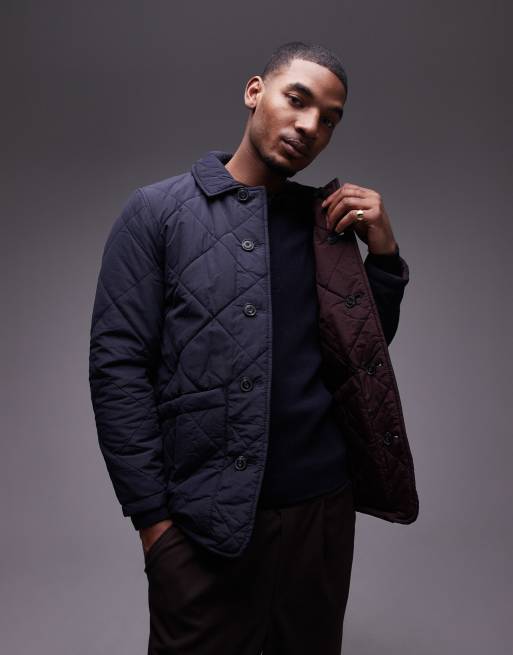 Chaqueta azul marino y burdeos reversible guateada de Mango