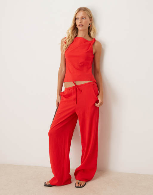 Conjunto rojo de pantalones con cordón ajustable y top de tirantes con diseño moldeado y detalle retorcido en los hombros de Mango