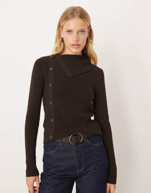 Jersey marrón con detalle de botones de mezcla de lana de Mango