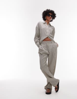 Pantalones a rayas monocromáticas de pernera recta con cinturilla elástica de Mango (parte de un conjunto)