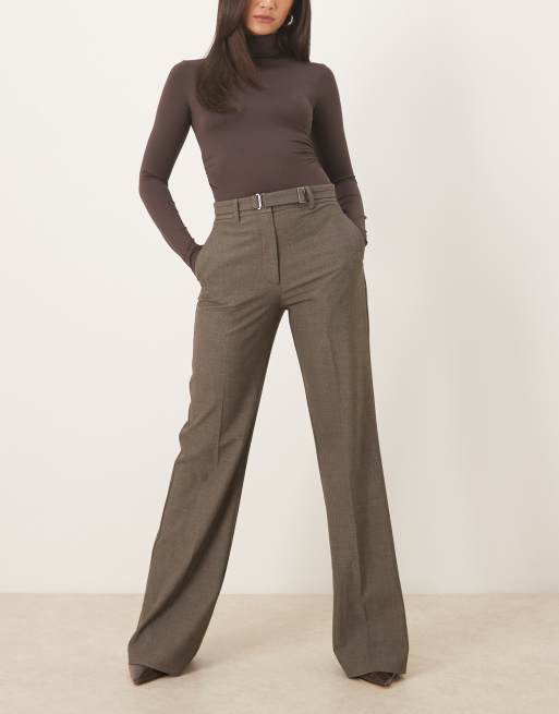 Pantalones de sastre marrones con cinturón de Mango