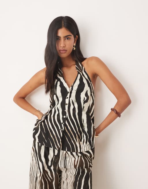 Top de sastre con cuello halter y estampado de cebra de Mango (parte de un conjunto)