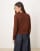 Top marrón con cuello barco y detalle de tachuelas de Mango