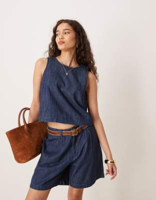 Top vaquero corto azul añil elegante de denim suave de Mango (parte de un conjunto)