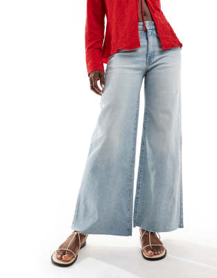 Vaqueros azul claro de pernera recta con bajo rasgado de Mango